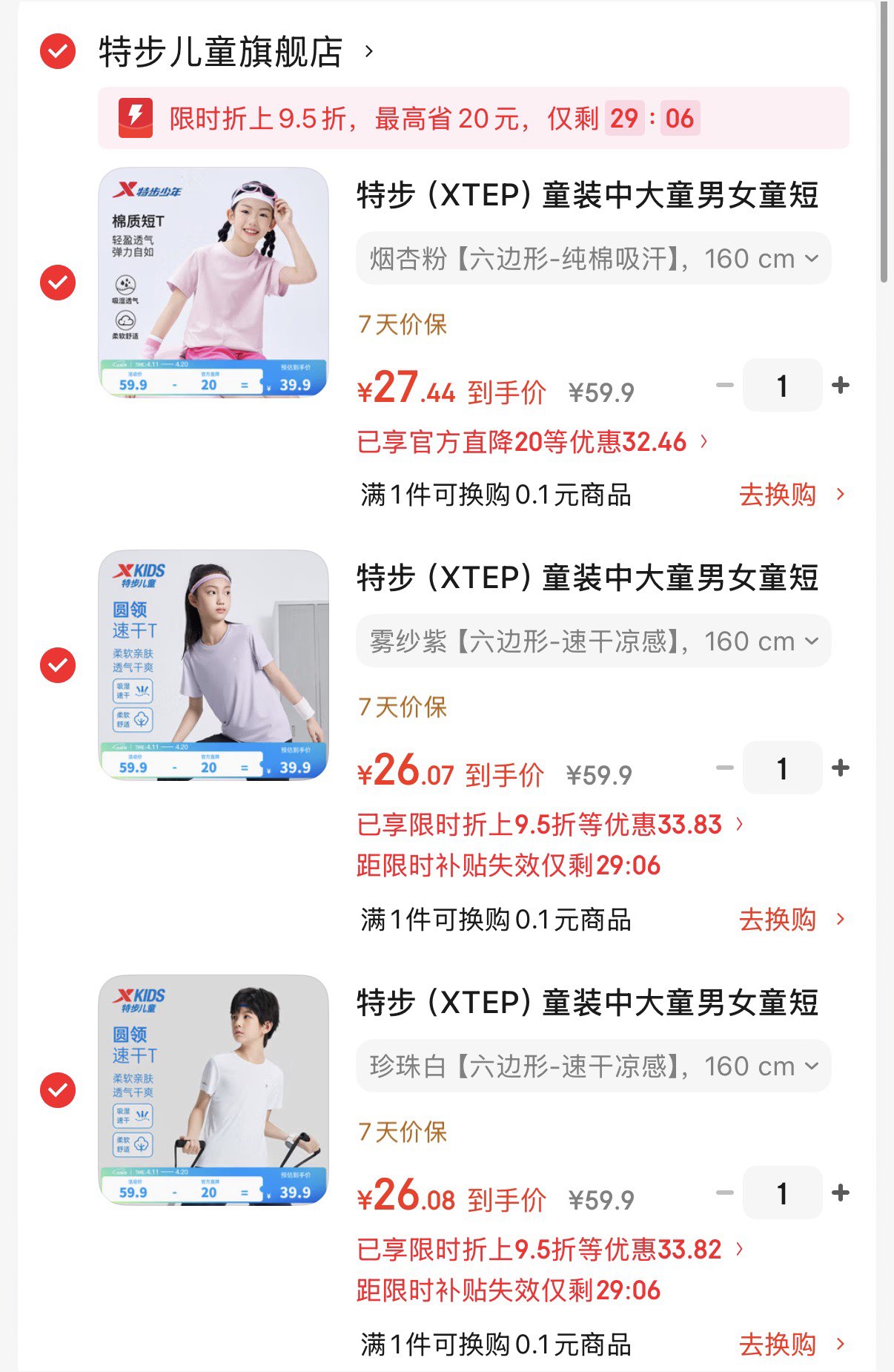 特步儿童速干凉感纯棉短T