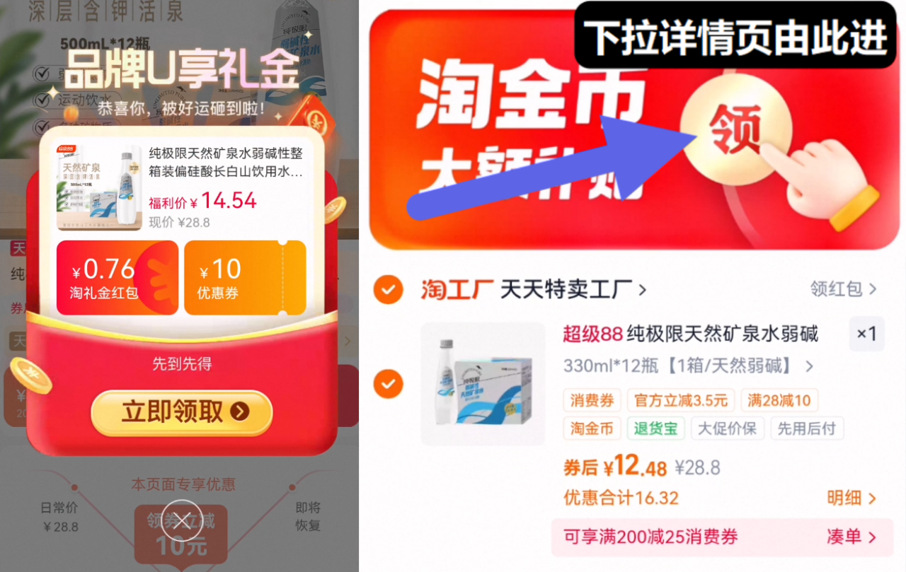 纯极限天然矿泉水330ml*12瓶 12.4元发报员Z2026年04月15日 20:330举报 1元/瓶速!限时补贴拍下12.4元!叠礼金 2元金币下拉详情页跳转淘金币拍【纯极限】天然矿泉水330ml*12瓶https://m.tb.cn/h.ipoLc4N复制文案