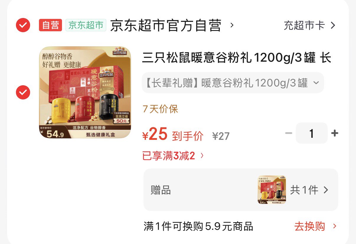 三只松鼠暖意谷粉礼1200g/3罐 买一送一 25元发报员Z2026年04月15日 23:250举报 上海 深圳 广州地区 用3-2全品券 拍下25元三只松鼠暖意谷粉礼1200g/3罐 买一送一 https://u.jd.com/j1TzJZz 复制文案