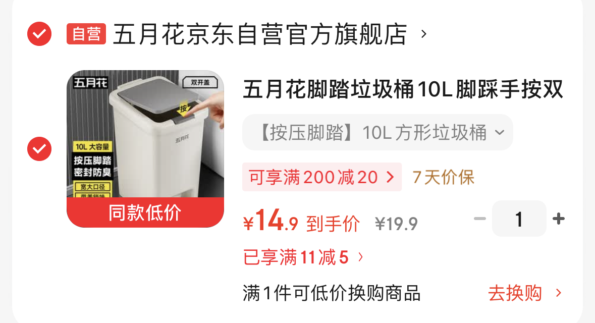【自营】五月花 按压脚踏 方形带盖垃圾桶10L