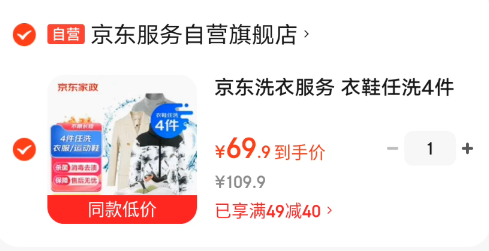京东服务衣鞋合集 69.9元 衣鞋任洗4件,京东服务衣鞋合集 88.8元 衣鞋任洗5件
