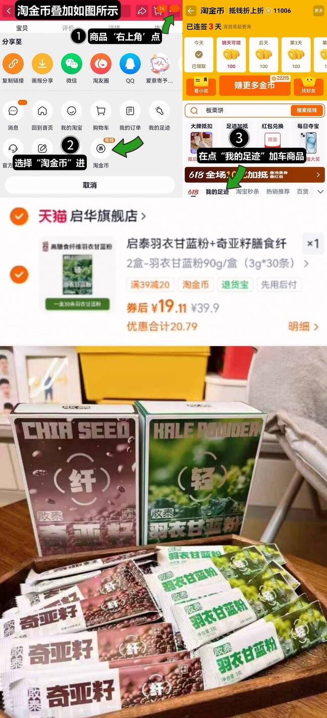 ①如图点右上角3个点,选淘金币