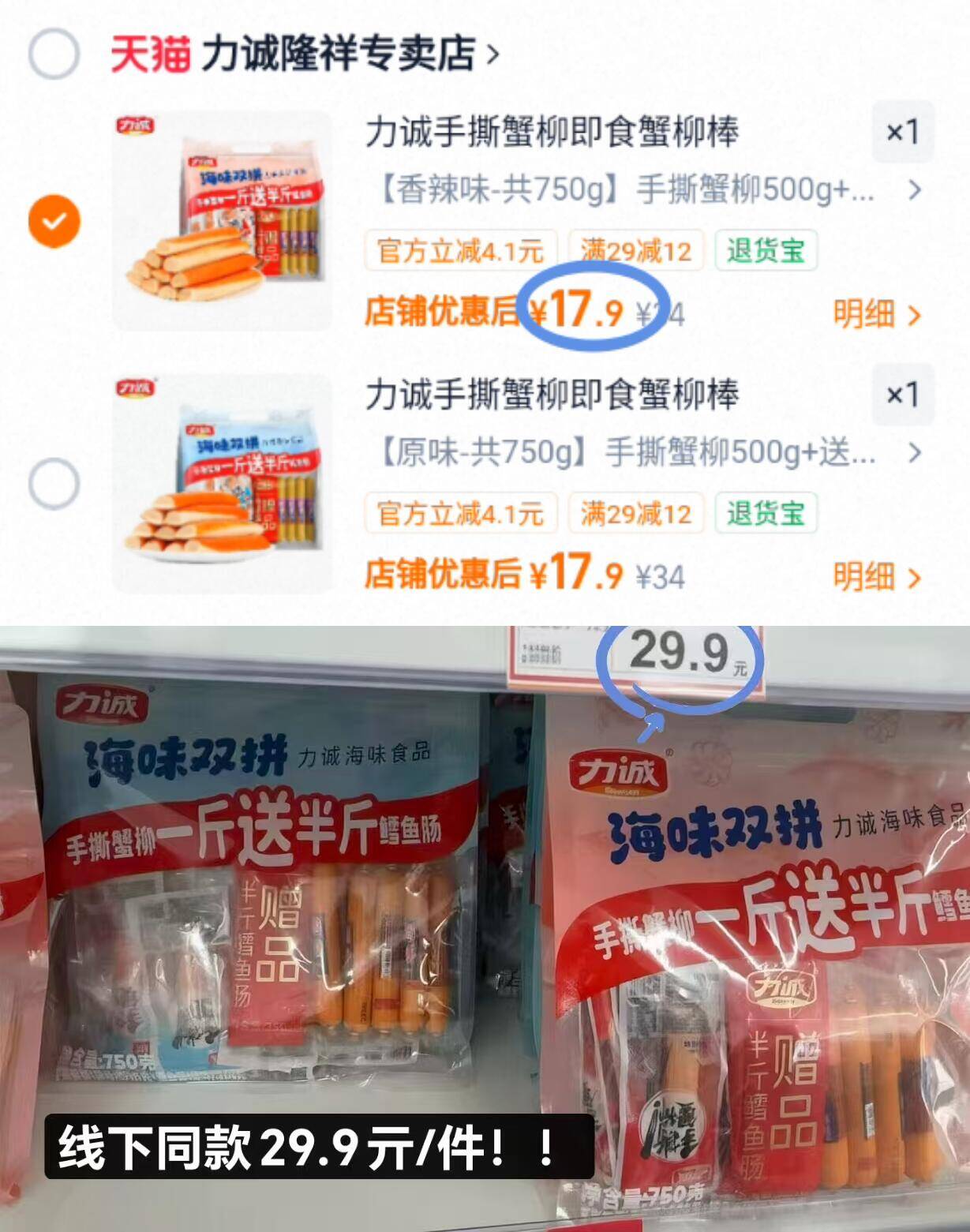 力诚即食手撕蟹柳500g 17.9元发报员Z2026年04月17日 23:400举报 0点17.9元 赠鳕鱼肠250g【力诚】即食手撕蟹柳500ghttps://m.tb.cn/h.iJLkVSU低脂高蛋白!解馋又充饥线下超市同款卖39.9元复制文案