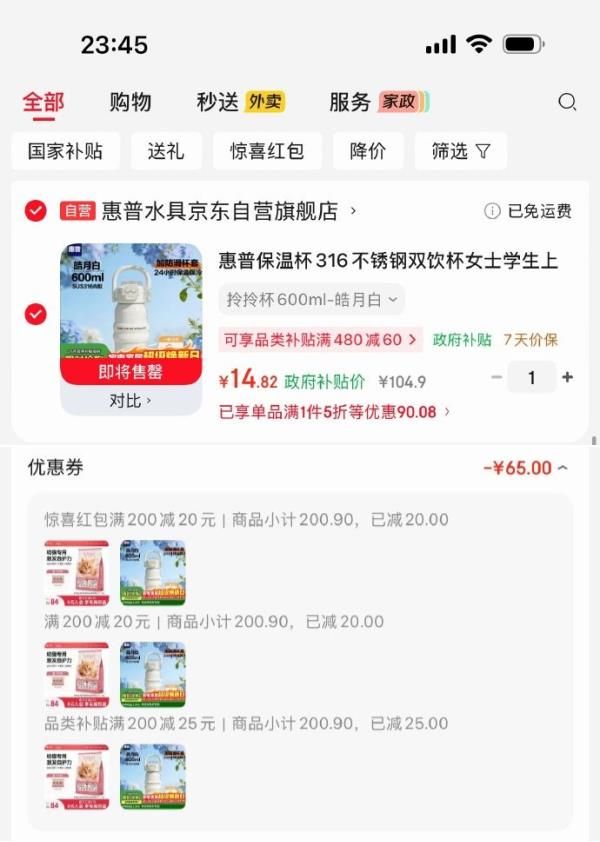惠普保温杯600ml,凑后【14.82】
