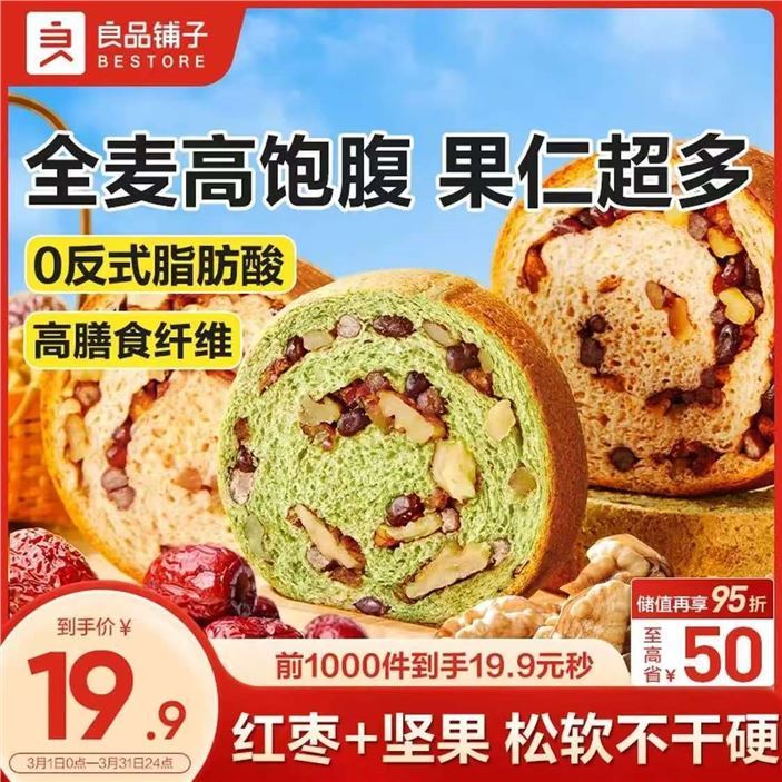良品铺子 坚果車轮吐司500g