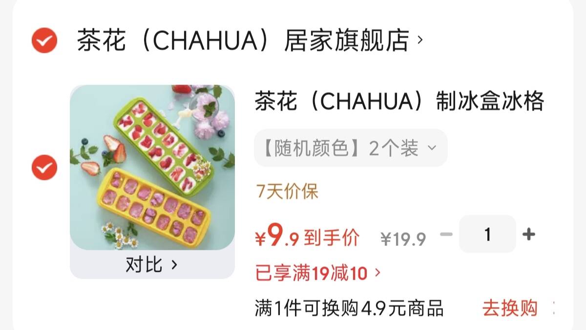茶花制冰盒模具2个装9.9元
