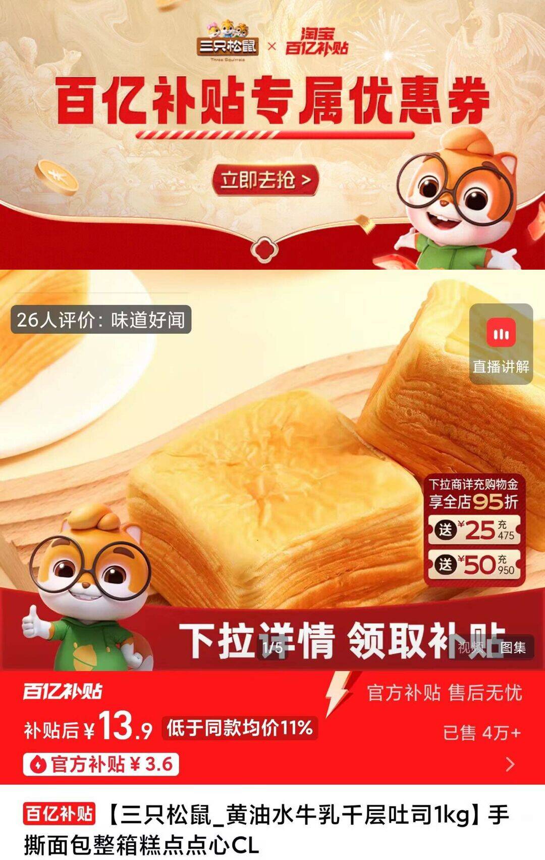三只松鼠黄油水牛乳千层吐司1kg 13.9元发报员Z2026年04月20日 18:090举报 下拉详情拍,13.9元 三只松鼠.黄油水牛乳千层吐司1kghttps://m.tb.cn/h.irYGJF5复制文案