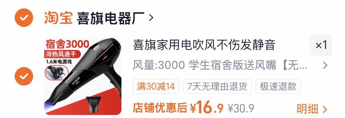 喜旗大功率电吹风吹风机 16.9元发报员Z2026年04月21日 11:390举报 喜旗大功率电吹风吹风机 16.9元小巧便携风量大!这么便yi 将来丢掉也不心疼https://m.tb.cn/h.iIhdQJb复制文案