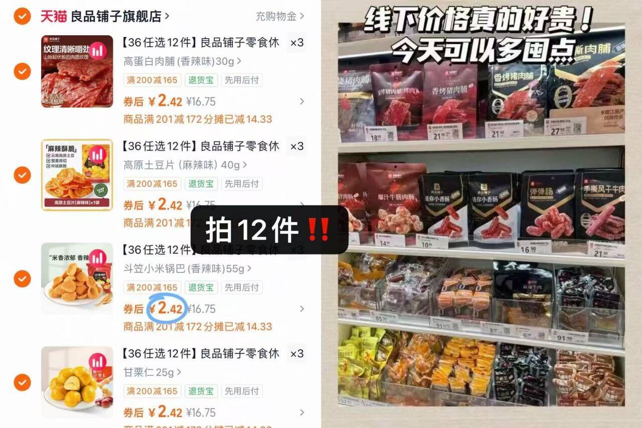 良品铺子零食任选12件 29元发报员Z2026年04月21日 19:040举报 2.4/件 良品铺子零食任选任选12件29元 比线下划蒜肉脯/果干/坚果/饮料…快挑!复制这条信息打开手机陶宝https://m.tb.cn/h.iILCbWC复制文案