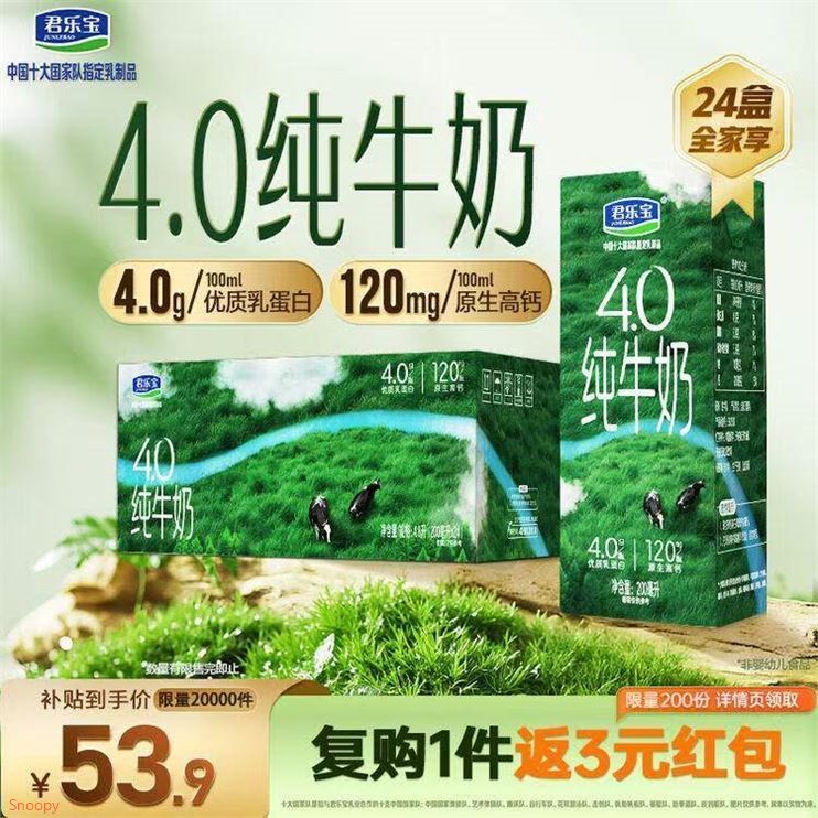 君乐宝原生高钙纯牛奶24盒 买2件102.6元发报员Z2026年04月22日 08:240举报 —— 君乐宝纯奶发車——【自营】4.0g蛋白纯牛奶24盒https://u.jd.com/jDoctIr 买2件102.6元,plus97.2元*折2/盒 原生高钙 品质营养复制文案