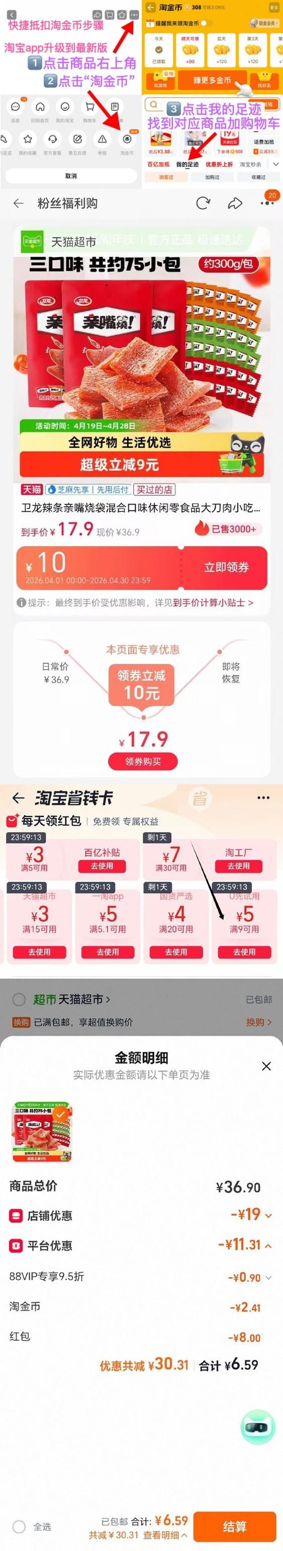 领弹窗10券,淘金币加购(目前没有礼金,可留意白天10点后补1.25礼金,5.3左右到手)