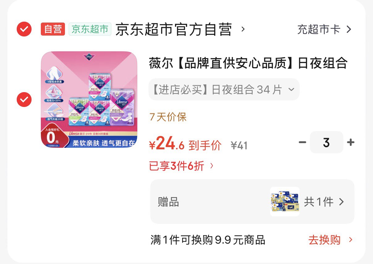 薇尔日夜组合卫生巾34片拍3件 73.8元发报员Z2026年04月22日 10:270举报 薇尔日夜组合卫生巾34片拍3件到手73.8元赠得宝抽纸80抽*18包整箱https://u.jd.com/jrmtmVh 复制文案