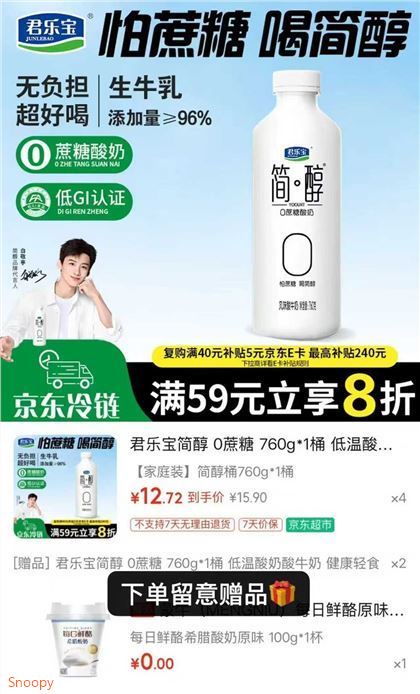 君乐宝简醇酸奶760g 买4件50.8元,赠同款2瓶及每日鲜酪100g发报员Z2026年04月22日 12:200举报 —— 酸奶贈品加.码——【自营】君乐宝 简醇酸奶760ghttps://u.jd.com/jaoe7ZZ 买4件50.8 运費;Plus包.邮*贈同歀2瓶 及每日鲜酪100g复制文案