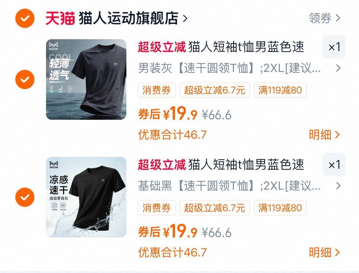 猫人男士速干短袖拍2件 39.8元发报员Z2026年04月22日 14:440举报 19.9/件猫人男士速干短袖拍2件39.8元基础百搭歀大牌白菜 价!耐洗不变形基础歀版型简约大方!冲哇~-https://m.tb.cn/h.iH9Us3Q复制文案