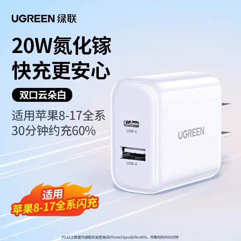 32.9元 绿联20W双口闪充电头