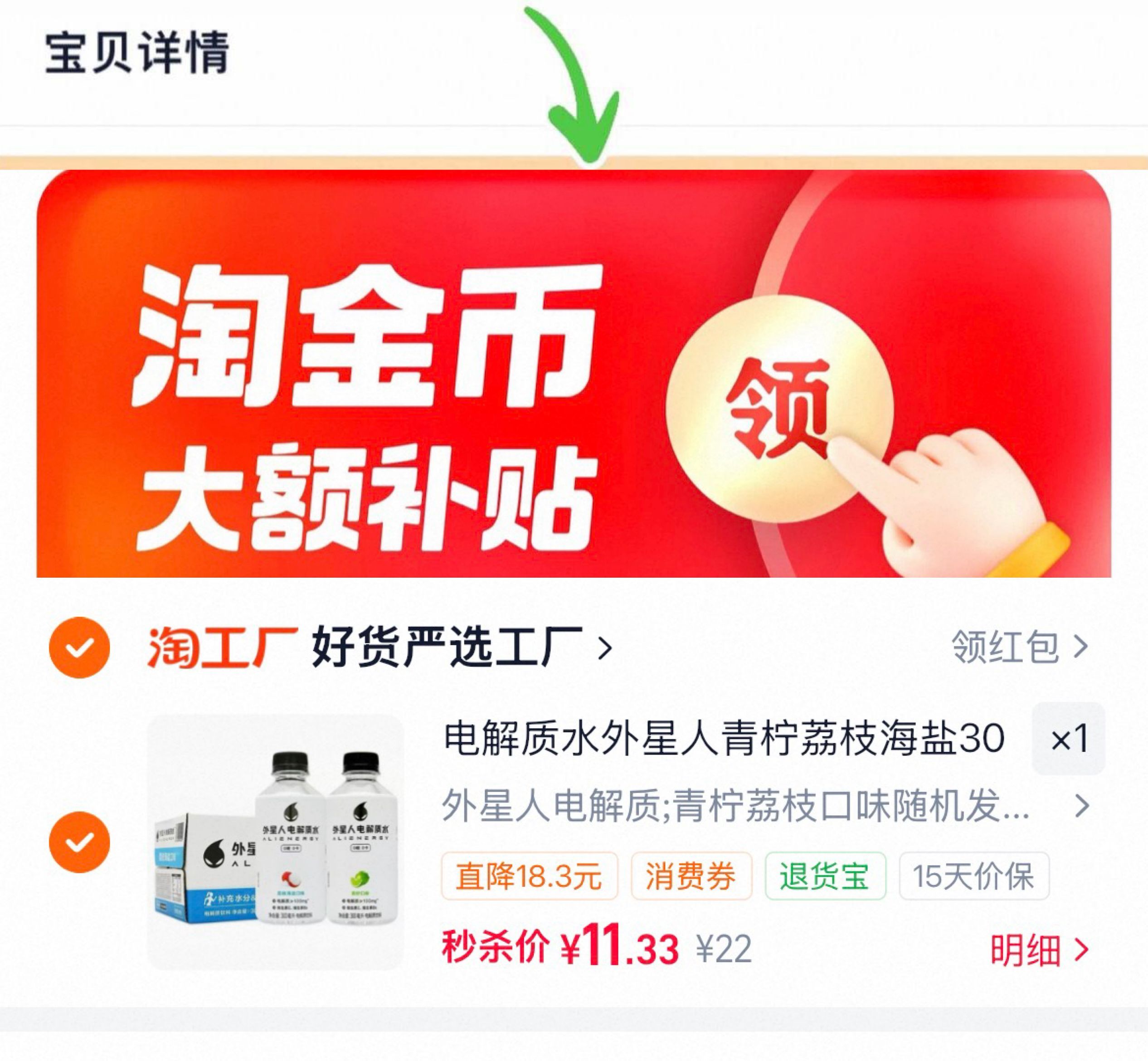 下拉金币拍 11.3元 折2.2/瓶 外星人 青柠荔枝电解质水*5瓶发报员Z2026年04月22日 16:340举报 下拉金币拍11.3元,折2.2/瓶 外星人 青柠荔枝电解质水*5瓶https://m.tb.cn/h.isR3Iaf复制文案