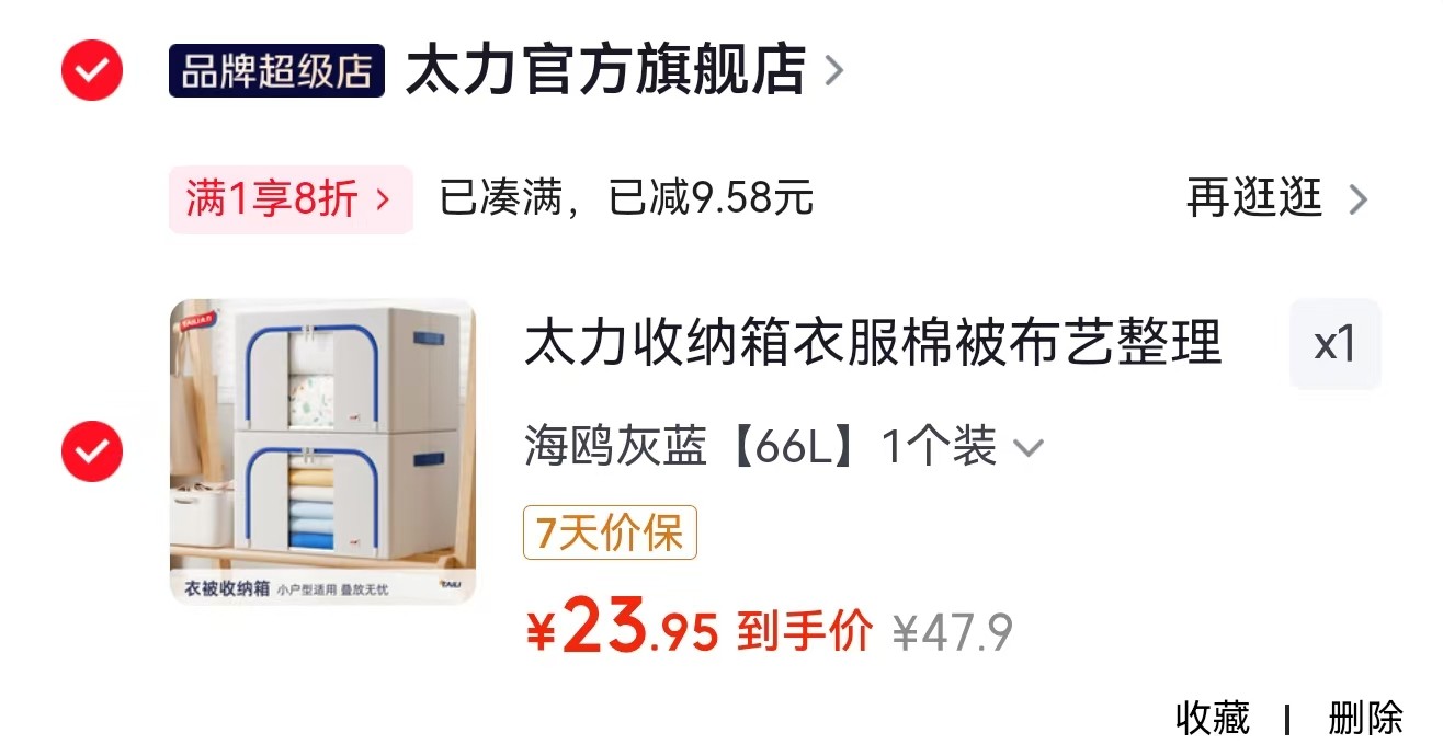 太力收纳箱衣服棉被布艺整理箱储物百纳箱一个装 66L【23.9】