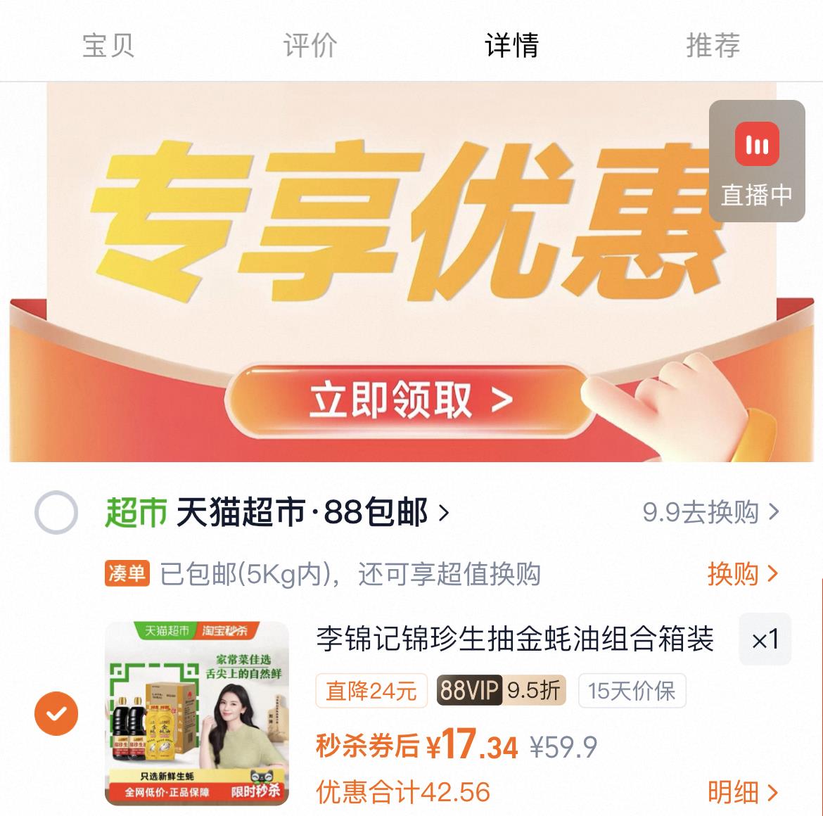 李锦记锦珍生抽1.45kg*2金蚝油550g*2 16元 发报员Z 2026年04月22日 20:38 0 举报 下拉详情拍,17元-返1虹包=16元 李锦记锦珍生抽1.45kg*2 金蚝油550g*2https://m.tb.cn/h.iHKLKz8 复制文案