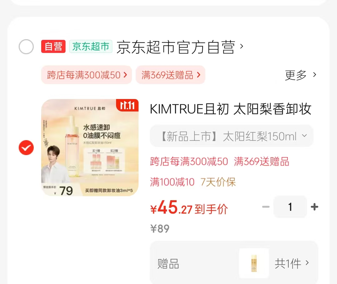 自营且初 太阳梨/无花果/小青瓜卸妆油150ml