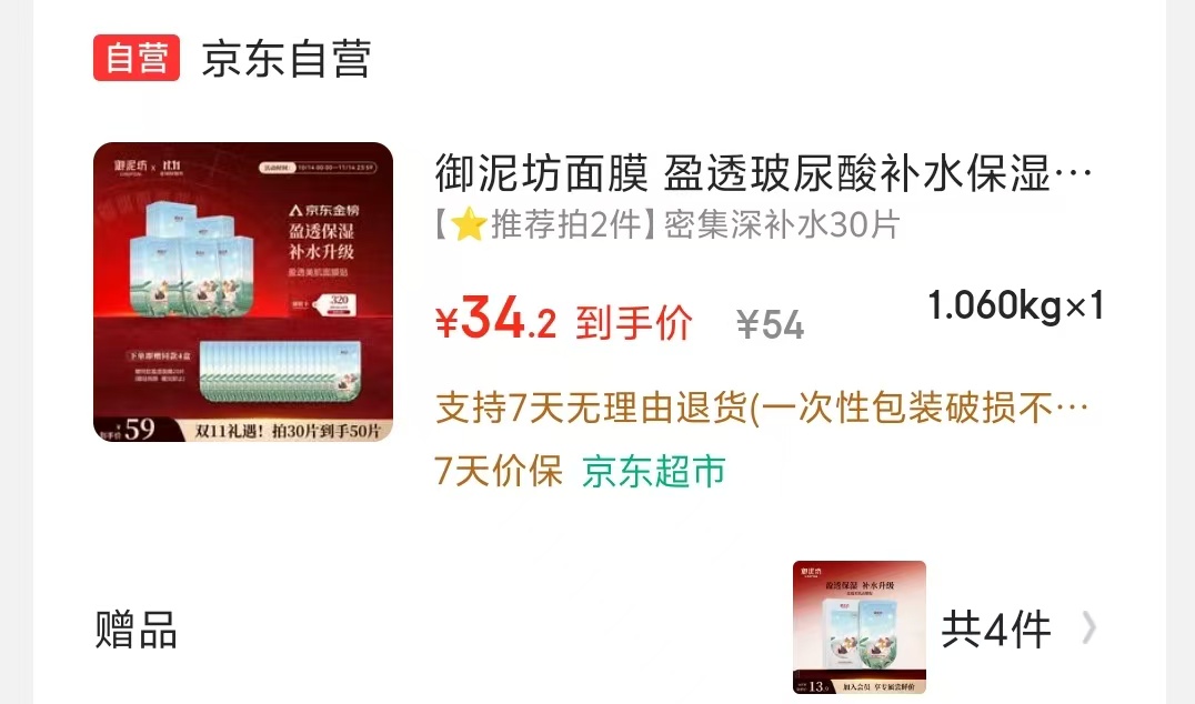 自营御泥坊 盈透玻尿酸面膜含赠50片