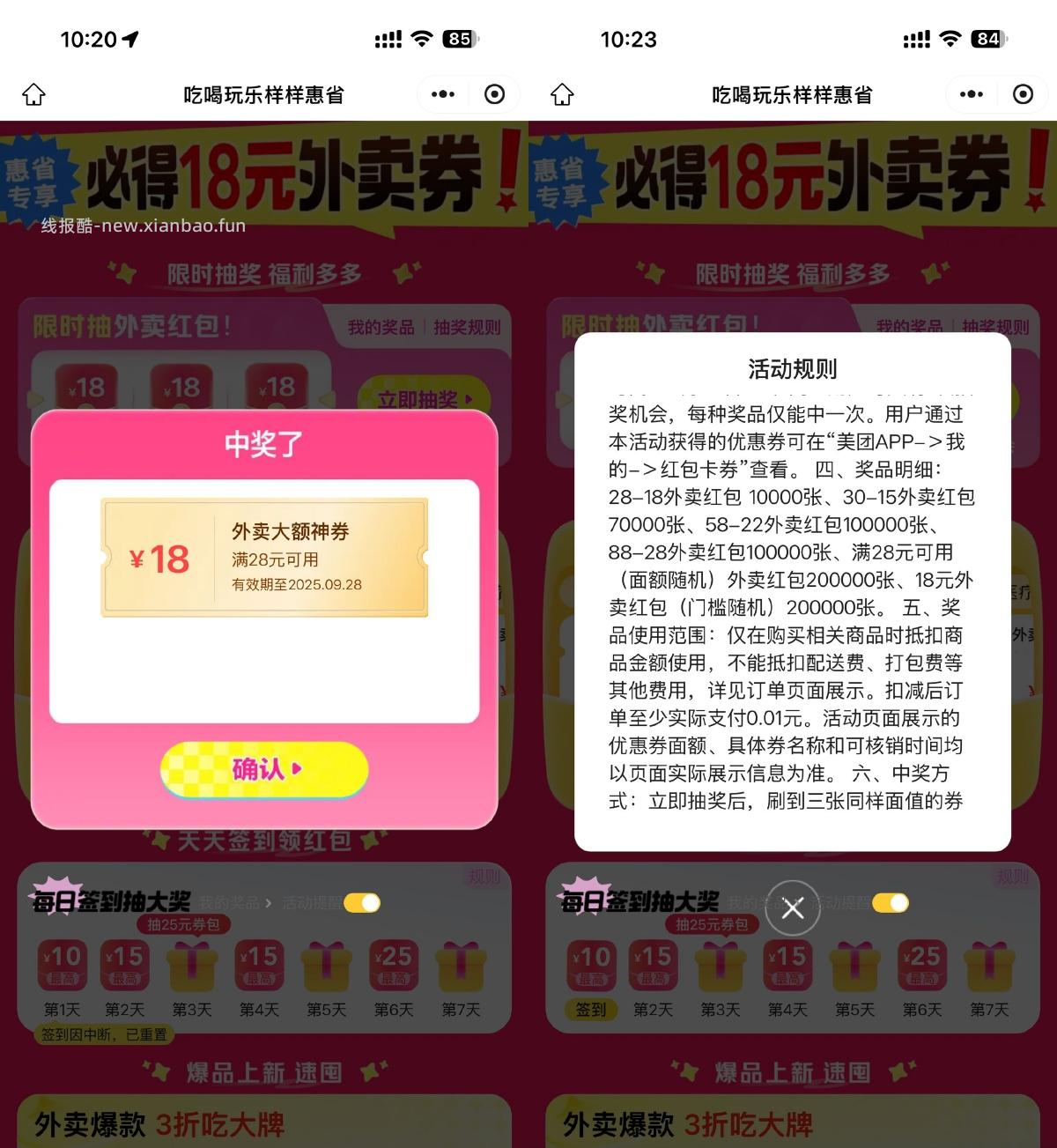 微信打开活动->直接去抽就行啦,今天大概率有28-18亓外卖券