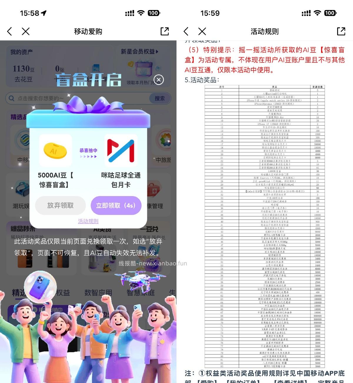 移动盲盒抽视频会员或实物等小刀2025年10月11日 16:040举报打开活动地址->移动用户直接抽盲盒,有腾讯视频、爱奇艺、优酷会员或实物等奖励活动地址:https://tb3.cn/A5auEy复制文案原文地址:https://www.x6d.com/i-wz-30044.html版权声明:本站作为免费线报整合平台,文章快照抓取源于网络。临时存储未经验证,本站不参与任何平台活动,请自行甄别,谨防受骗!