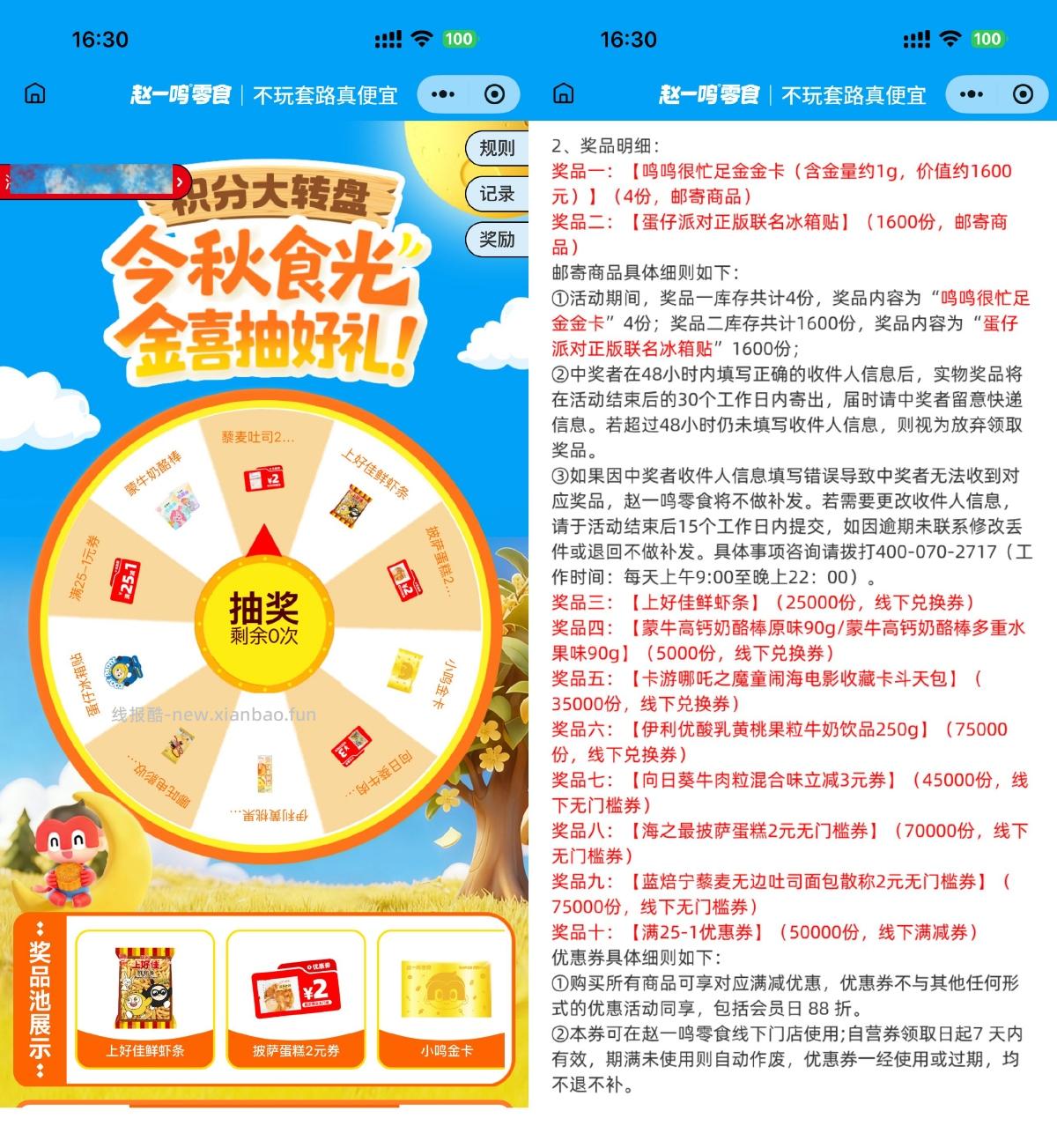 微信打开活动->签到有1次机会,抽零食兑换券 到赵一鸣门店兑换即可