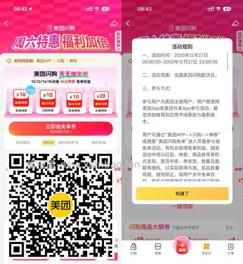 【美团抽30万份30亓闪购免单】美团APP扫码->今天11/12/14/16点会放水,抽啤酒/水果/闪购免单神券