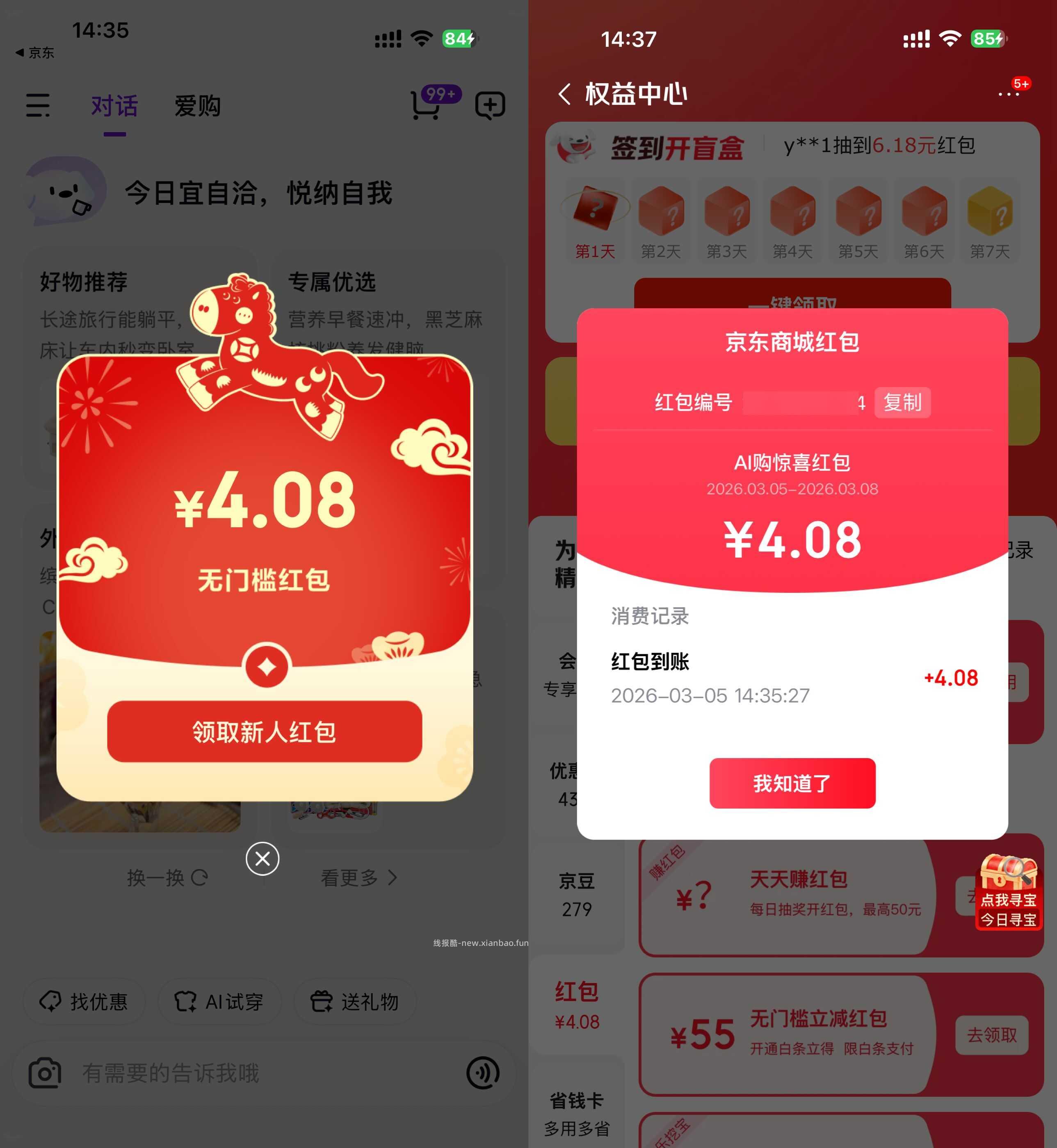 下载“京东AI购”APP->京东APP授权登录->弹最高20元无门槛红包